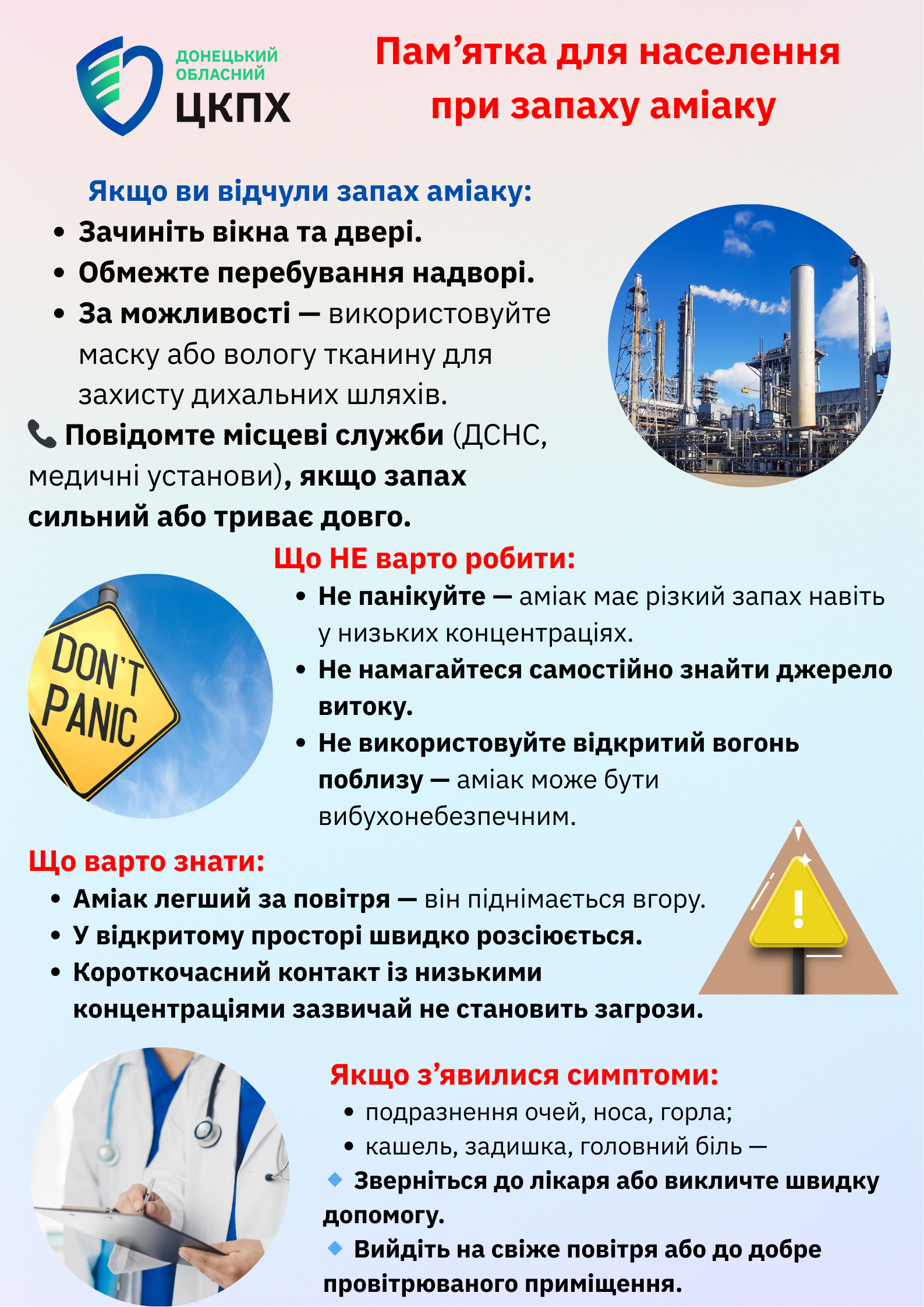 Пам’ятка для населення при запаху аміаку