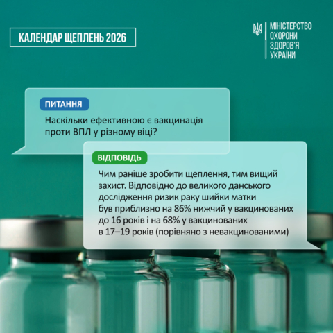 До оновленого Національного Календаря профілактичних щеплень включено вакцину проти вірусу папіломи людини (ВПЛ) для дівчат віком 12-13 років