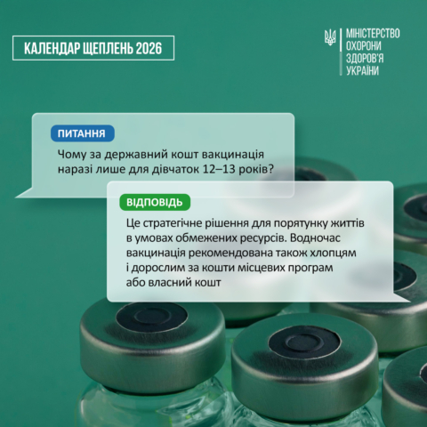 У оновленому Календарі профілактичних щеплень передбачена можливість безоплатної вакцинації для дівчат віком 12-13 років найсучаснішою 9-валентною вакциною.