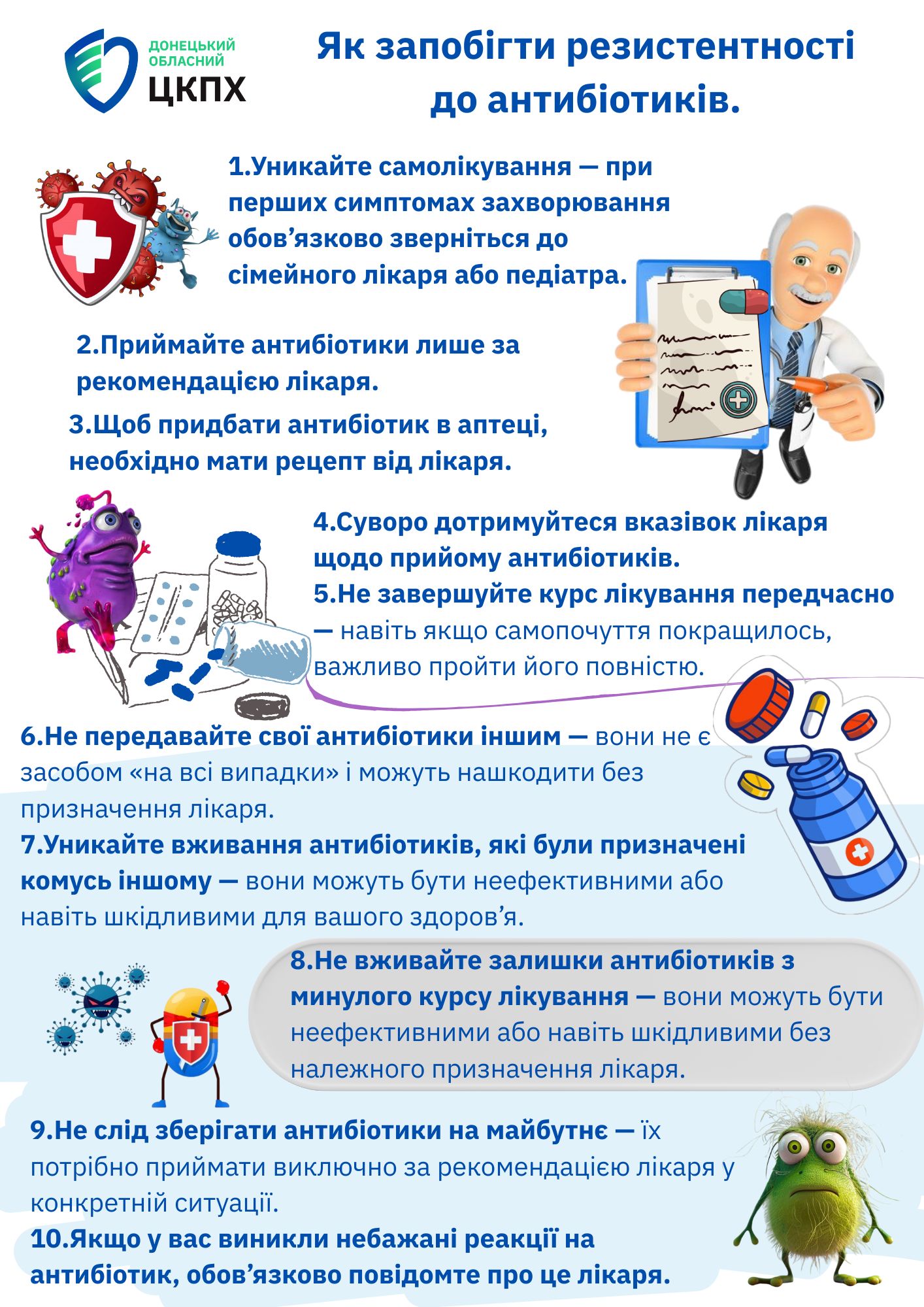 ❗Якщо застосовувати антибіотики неправильно, існує ризик, що хвороби, які сьогодні легко й успішно лікуються, у майбутньому можуть перетворитися на смертельно небезпечні!