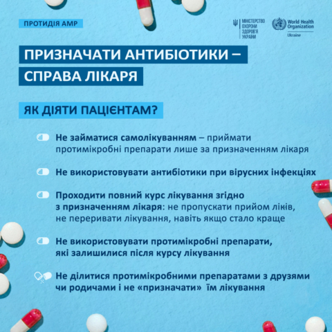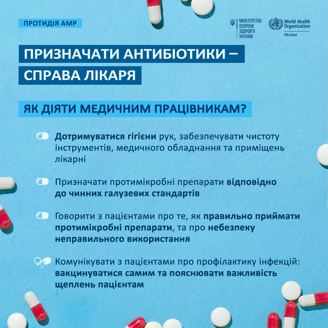 Що робити медичним працівникам і пацієнтам, аби запобігти розвитку стійкості до протимікробних препаратів, дивіться на нашій із World Health Organization Ukraine інфографіці. ⬇️⬇️⬇️