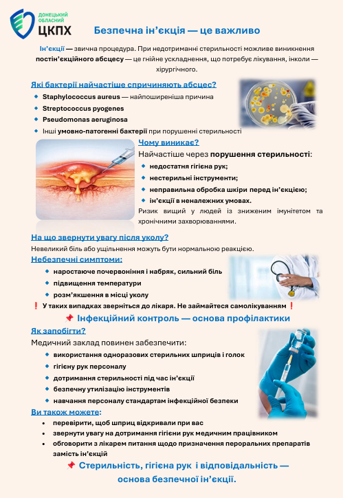 Профілактика постін’єкційних абсцесів починається з дотримання стандартів інфекційної безпеки в закладах охорони здоров’я.