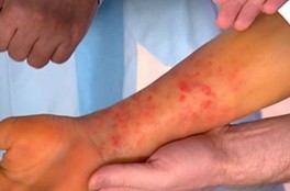 - Приблизно через 3-4 дні після початку лихоманки може з’явитися висип, який спочатку може бути помічений на обличчі, а потім поширюється на все тіло.