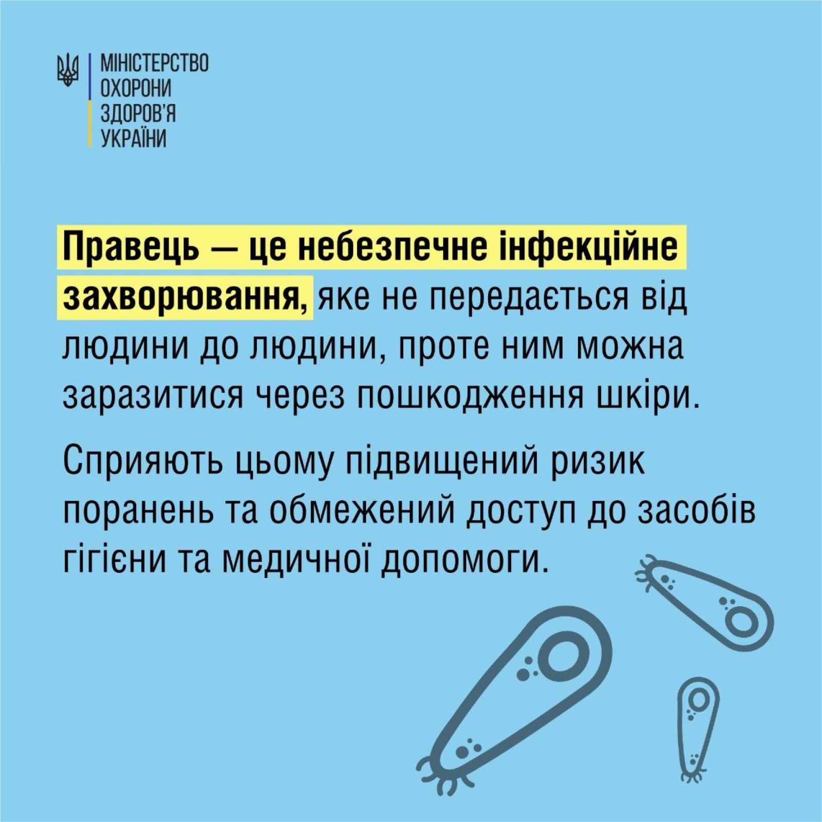 Обробка рани антисептиками не може знешкодити бактерії. Від людини до людини це захворювання не передається.