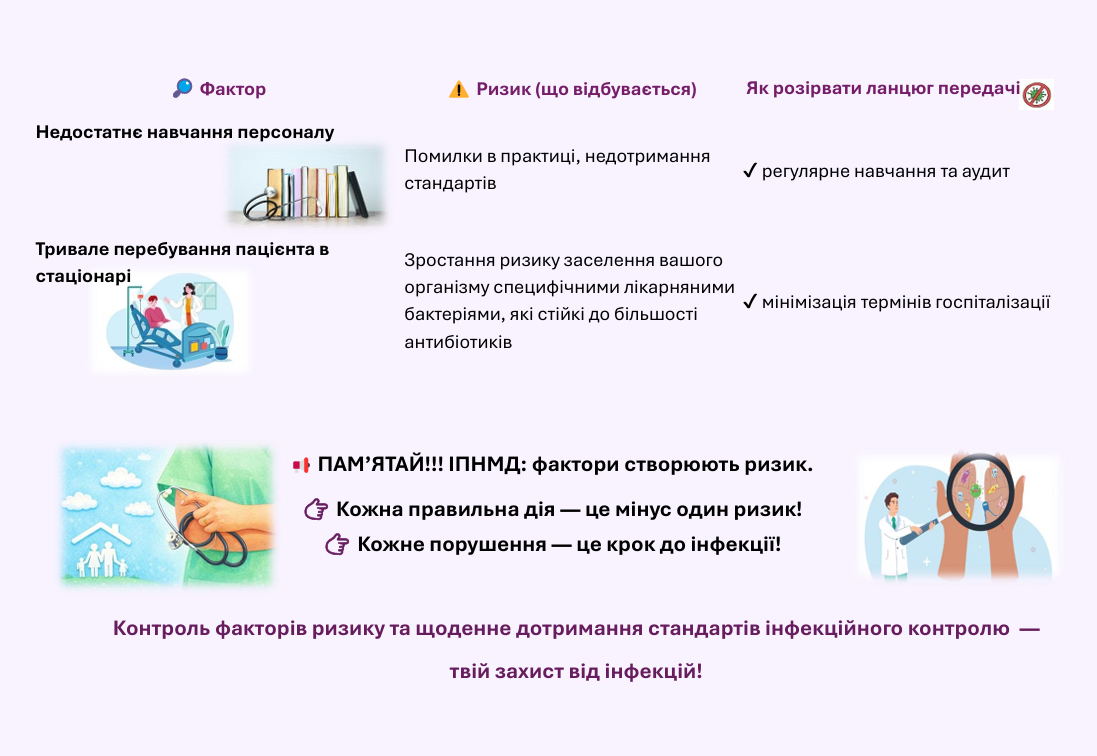 📌Отже, інфекції, пов’язані з наданням медичної допомоги, виникають внаслідок конкретних порушень, які можуть бути ефективно попереджені. Контроль факторів ризику та щоденне дотримання стандартів інфекційного контролю є основою безпечної медичної допомоги.