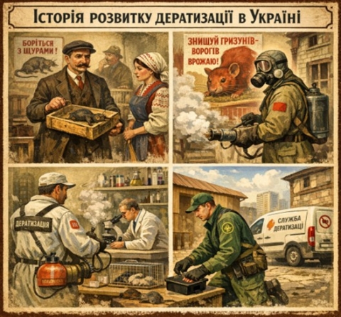 ℹ️Дератизація – це складний процес боротьби з гризунами, який має довгу та цікаву історію. В Україні розвиток дератизації тісно пов’язаний із формуванням державної санітарно-епідеміологічної служби та еволюцією системи громадського здоров’я.
