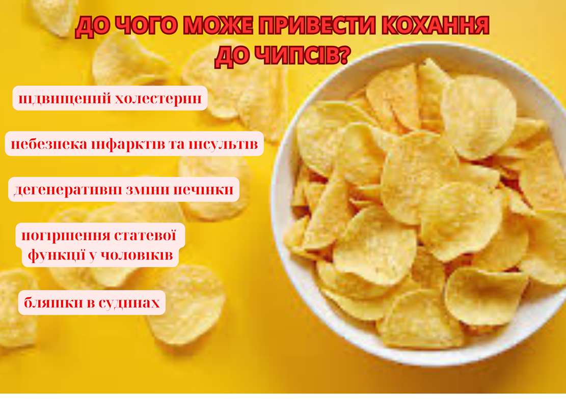 Чипси вважаються одним із найпопулярніших продуктів серед молоді, при цьому вони незмінно посідають перші місця у рейтингах шкідливих для здоров’я людини товарів.