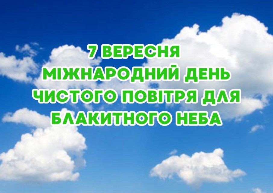7 вересня Міжнародний день чистого повітря для блакитного неба (International Day of Clean Air for blue skies).