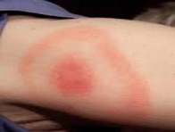 Це захворювання підступне, бо спочатку маскується під звичайне ГРВІ. Початкові симптоми хвороби проявляються протягом 3-30 днів з моменту укусу, в середньому – 14 днів. Перші ознаки захворювання: головний біль, озноб, нудота, температура до 39°С, болі в м’язах і суглобах, виражена слабкість, стомлюваність, сонливість. На місці укусу з’являється червона пляма, так звана еритема, яка швидко збільшується у розмірах. Еритема має чіткий червоний край з світлою серединою, може досягати кілька десятків сантиметрів, зберігатись тривалий час (місяці). Іноді зникає за декілька днів. Водночас, захворювання може проявлятися без еритеми, але з гарячкою, що затрудняє діагностику.