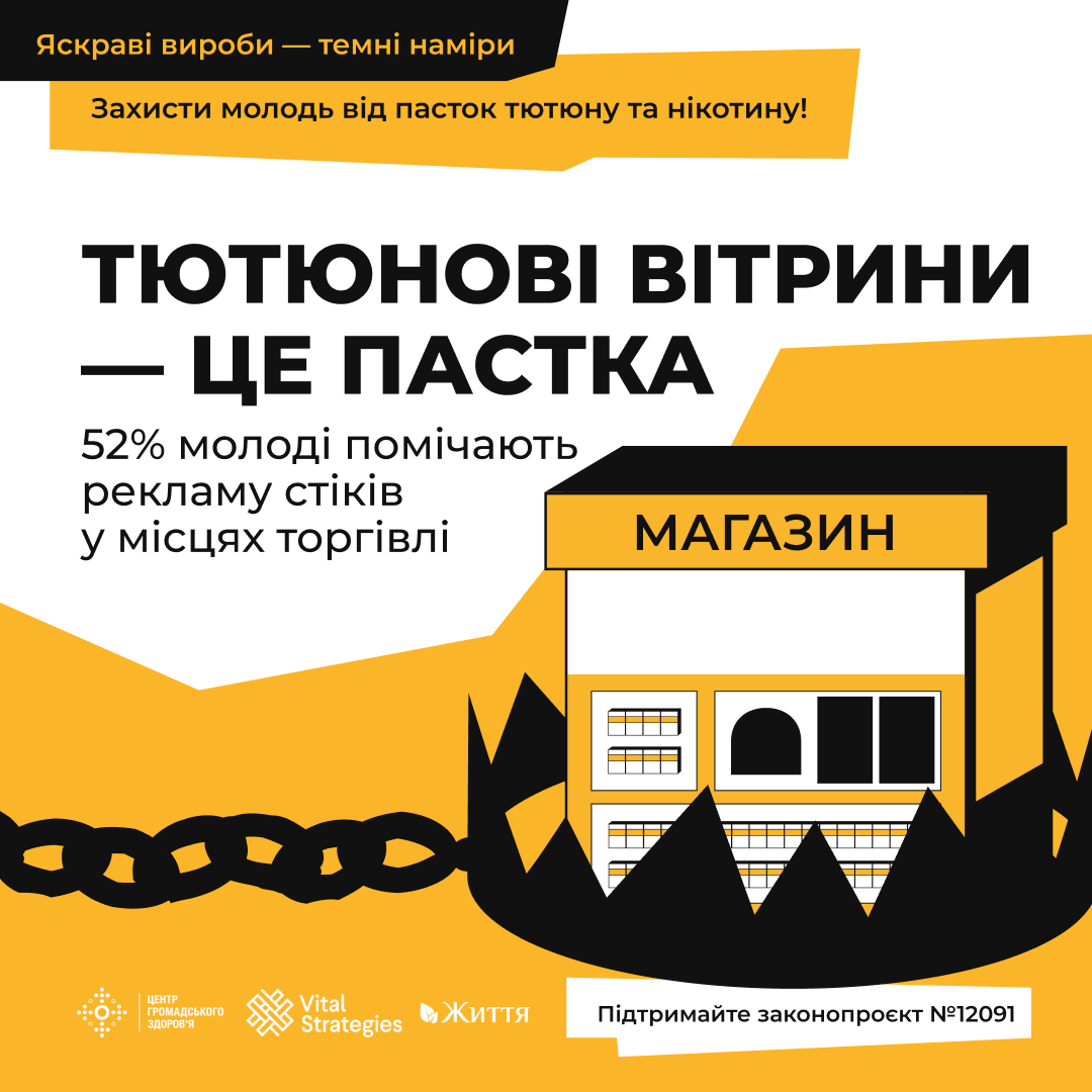 📊Проте тютюнова індустрія використовує вітрини у місцях торгівлі для агресивного залучення нових курців серед молоді. Щороку тютюнові компанії витрачають на це до 1,6 мдрд грн*.