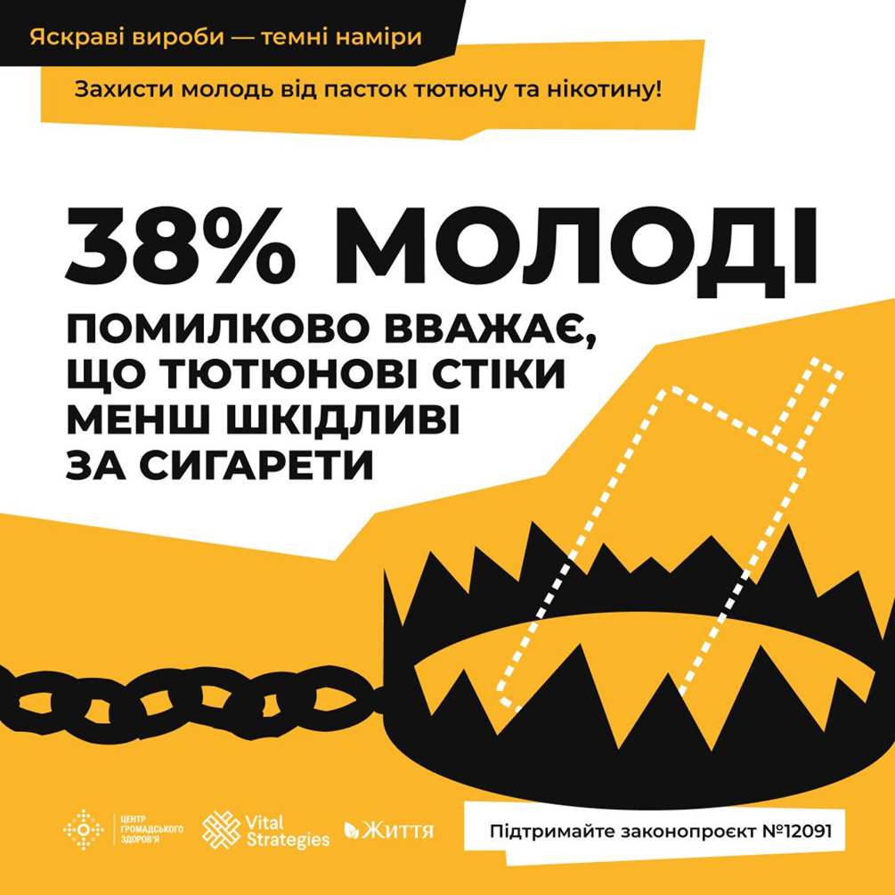 Втім, міфи тютюнової індустрії продовжують діяти: 38% молоді віком 18–29 років помилково вірять, що вироби для нагрівання справді менш шкідливі.