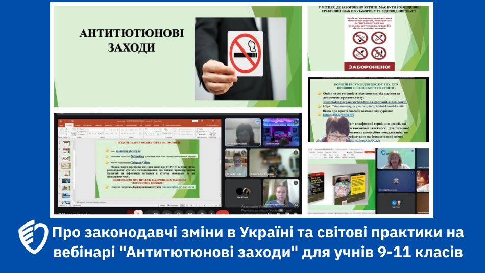 Про законодавчі зміни в Україні та світові практики на вебінарі “Антитютюнові заходи” для учнів 9-11 класів