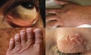 При загибелі гельмінтів навколо них розвивається запальна реакція, що призводить до формування абсцесу, кісти чи фурункулу. Інкубаційний період (прихований) триває від місяця до кількох років, що відповідає часу розвитку личинки до дорослої стадії. Як проявляється дирофіляріоз? Спочатку утворюється під шкірою ущільнений вузлик розміром до 2 см, у якому знаходиться дирофілярія. Вузлик виникає в будь-якій частині тіла: в ділянці голови, шиї, грудної клітки, в ділянці молочних залоз і чоловічих статевих органів, під шкірою верхніх та нижніх кінцівок. Особливе занепокоєння хворим завдає поява вузлика під шкірою чи кон’юнктивою повіка. При появі вузлика під кон’юнктивою повіка хворого турбують сльозотеча, фотофобія, набряк повік та кон’юнктиви.