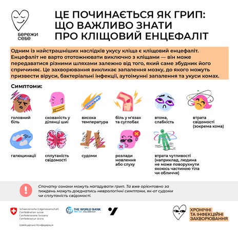 ✔️це вірусне захворювання, яке вражає центральну нервову систему (головний і спинний мозок). Передається людині через укус інфікованого кліща або рідше через споживання сирого молока від заражених тварин. Може призвести до серйозних ускладнень — паралічів, порушення пам’яті, іноді навіть смерті.