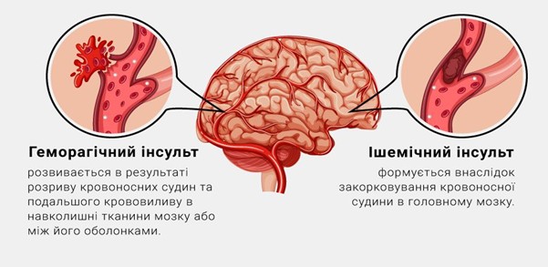 🧠Інсульт — це гострий стан, під час якого вражаються кровоносні судини головного мозку Інсульт виникає, коли судина, яка переносить кисень і поживні речовини, блокується кров’яним згустком або розривається.