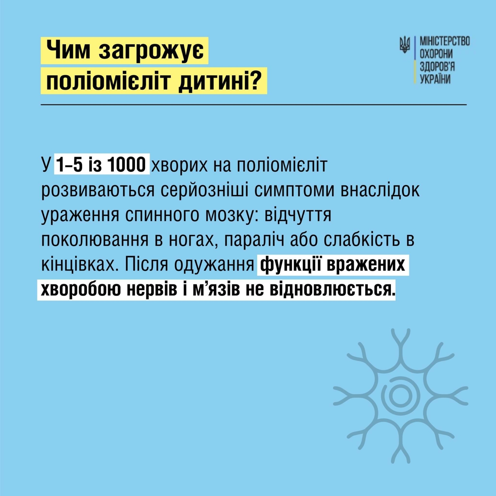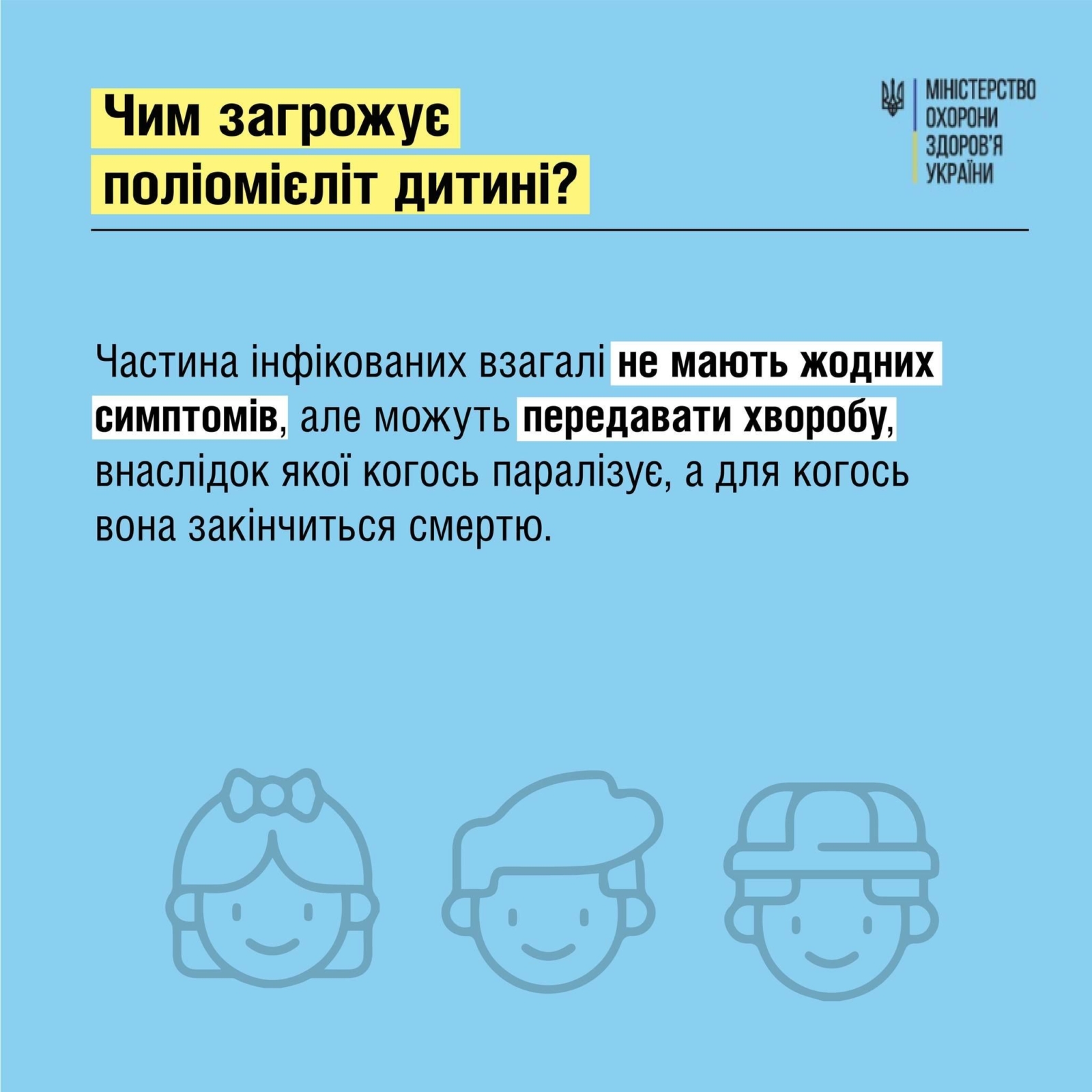 Поліомієліт — це високоінфекційне захворювання, яке є найбільш небезпечним для дітей, молодших за 5 років.