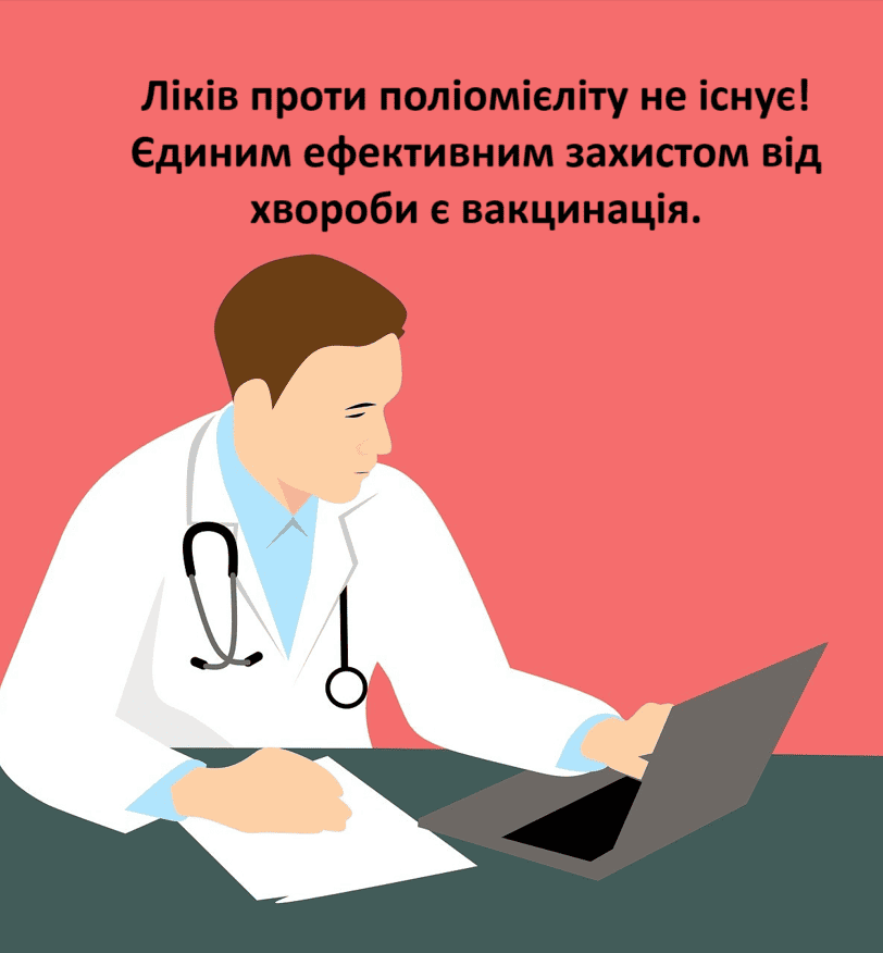 📌Ліків проти поліо не існує. Єдиним ефективним захистом від хвороби є вакцинація. Ефективність вакцинації від поліомієліту сягає 99% – 100% у разі отримання повного курсу щеплень.