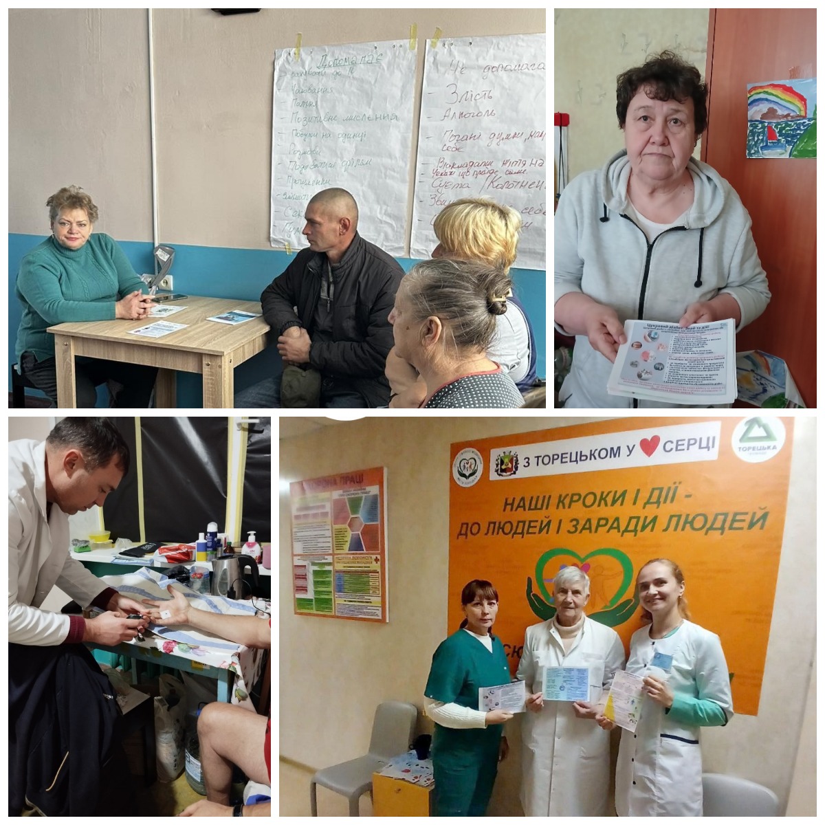 Фахівцями Добропільської, Торецької та Костянтинівської філій ДУ «ДОНЕЦЬКИЙ ОЦКПХ МОЗ» спільно з медичними працівниками було організовано проведення вимірювань рівня глюкози крові у мешканців центру тимчасового перебування внутрішньо переміщених осіб у с. Золотий Колодязь; внутрішньо переміщених осіб – пацієнтів амбулаторії № 9 ЗПСМ м.Торецька та гуманітарного хабу КНП «ЦПМСД м.Торецька», які релоковані у м.Дніпро; а також пацієнтів КП «ЦПМСД Костянтинівської міської ради». Внутрішньо переміщені особи – пацієнти амбулаторії № 9 ЗПСМ м.Торецька та гуманітарного хабу КНП «ЦПМСД м.Торецька» отримали можливість пройти також такі базові обстеження, як вимірювання артеріального тиску, ваги та визначення індексу маси тіла.