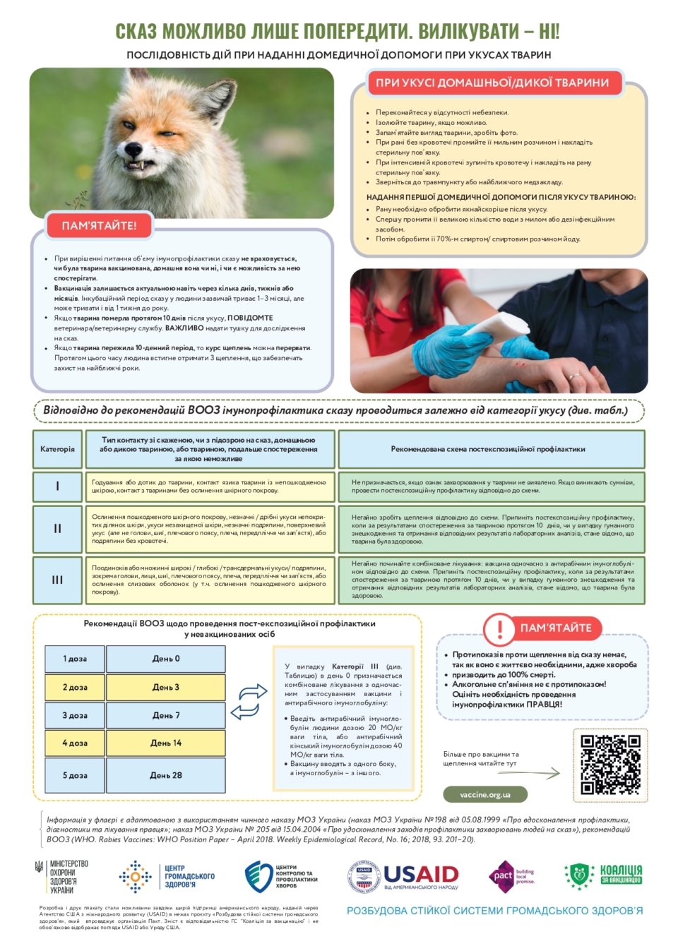 ℹ️Більше інформації про сказ та вакцинопрофілактику шукайте на Національний портал з імунізації.