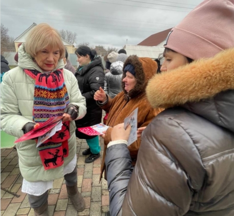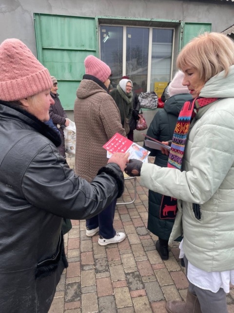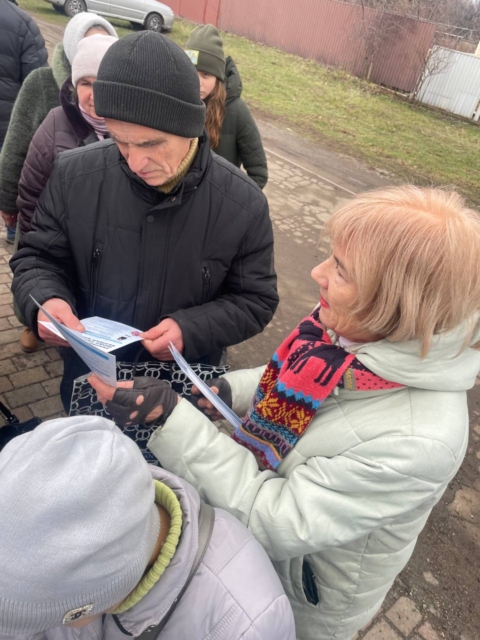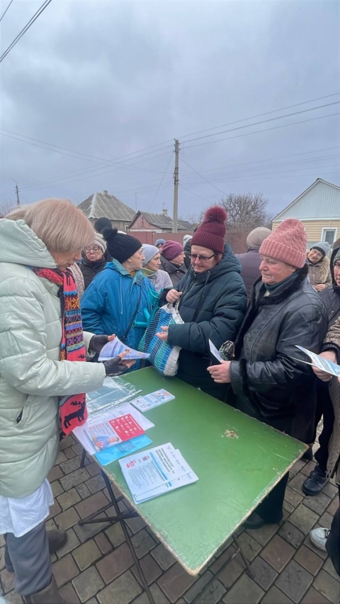 27 грудня 2024📣Фахівці ДУ «ДОНЕЦЬКИЙ ОЦКПХ МОЗ» в співпраці с ГРОМАДСЬКОЮ ОРГАНІЗАЦІЄЮ «ПРО100 ДІЙ» у пункті видачи гуманітарної допомоги людям похилого віку, людям з інвалідністю, переселенцям у місті Краматорську, провели активності щодо профілактики неінфекційних захворювань зокрема серцево-судинних захворювань, артеріальної гіпертензії, інфаркту міокарда, переохолоджень взимку, рекомендації щодо відмови від куріння.