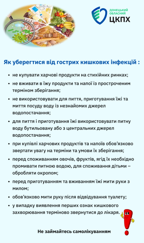Ураховуючи фекально-оральний механізм передачі ГКІ, в теплу пору року слід бути особливо обережним, ретельно стежити за чистотою рук🤲, харчуватись лише свіжими стравами, приготовленими з дотриманням санітарних правил, знищувати мух. Сирі овочі та фрукти треба добре мити проточною водою🚿, обливати окропом. Продукти, що швидко псуються, зберігати в холодильнику, дотримуючись термінів їх придатності.