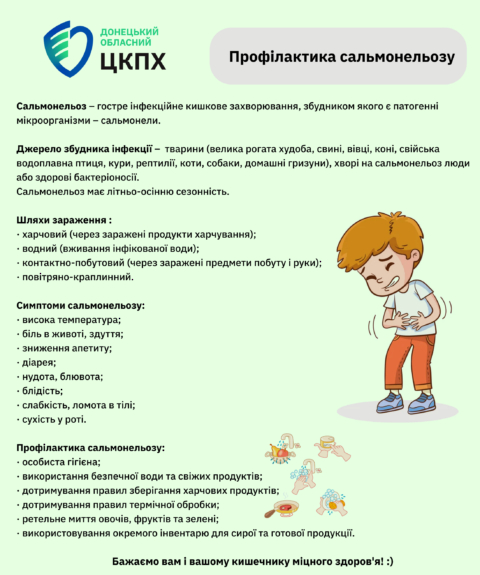 Ситуація з захворюваністю на сальмонельоз залишається загостреною: 86 випадків за 6 місяців 2024 року, показник 7,37, проти 70 випадків, показник 4,2 у минулому році, перевищення загальнодержавного показника у 2,4 рази. Серед хворих на сальмонельоз дитяче населення склало 43,02%.