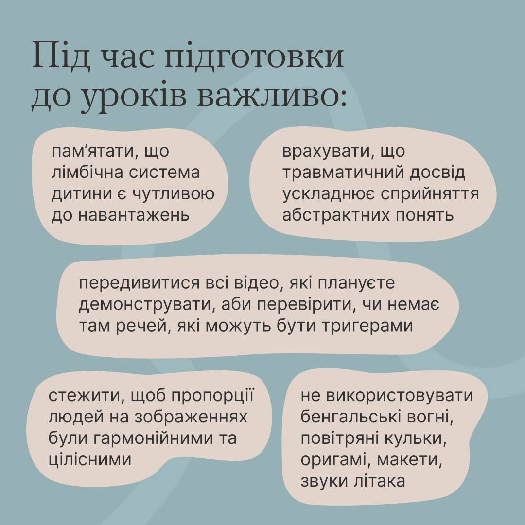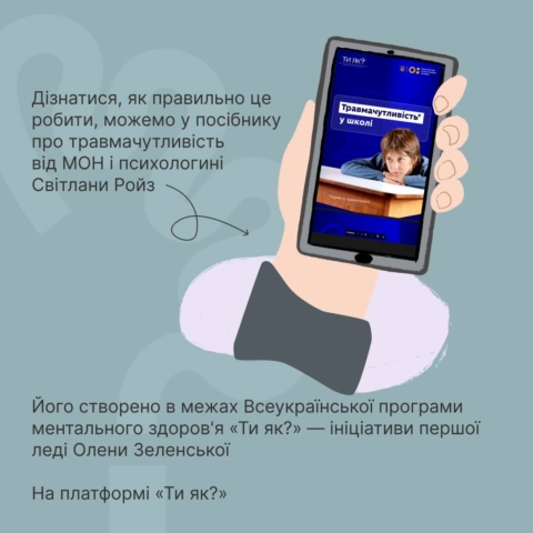 А поради щодо травмачутливості для вчителів, батьків і опікунів є у посібнику від Міністерство освіти і науки України і психологині Світлана Ройз — на платформі «Ти як?» Всеукраїнської програми ментального здоров’я за ініціативою Олена Зеленська