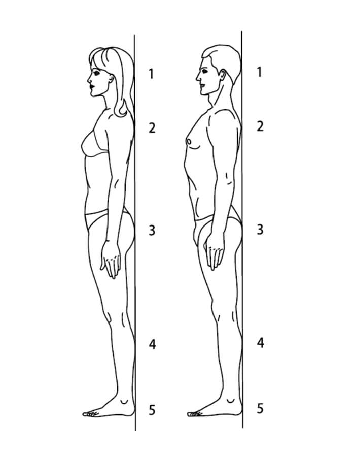 ⏩ довжина рук і ніг, форма трикутників талії – однакова;
