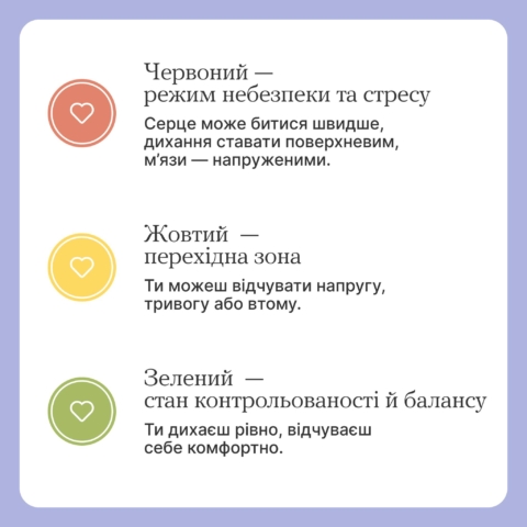 Це короткі нагадування про те, як стабілізувати свій стан та емоції, коли це необхідно, щоб зберігати стійкість за будь-яких обставин. Як зупинитися та прислухатися до власних потреб. Як, хоч би що відбувалося, нагадати собі: ти на своєму шляху.