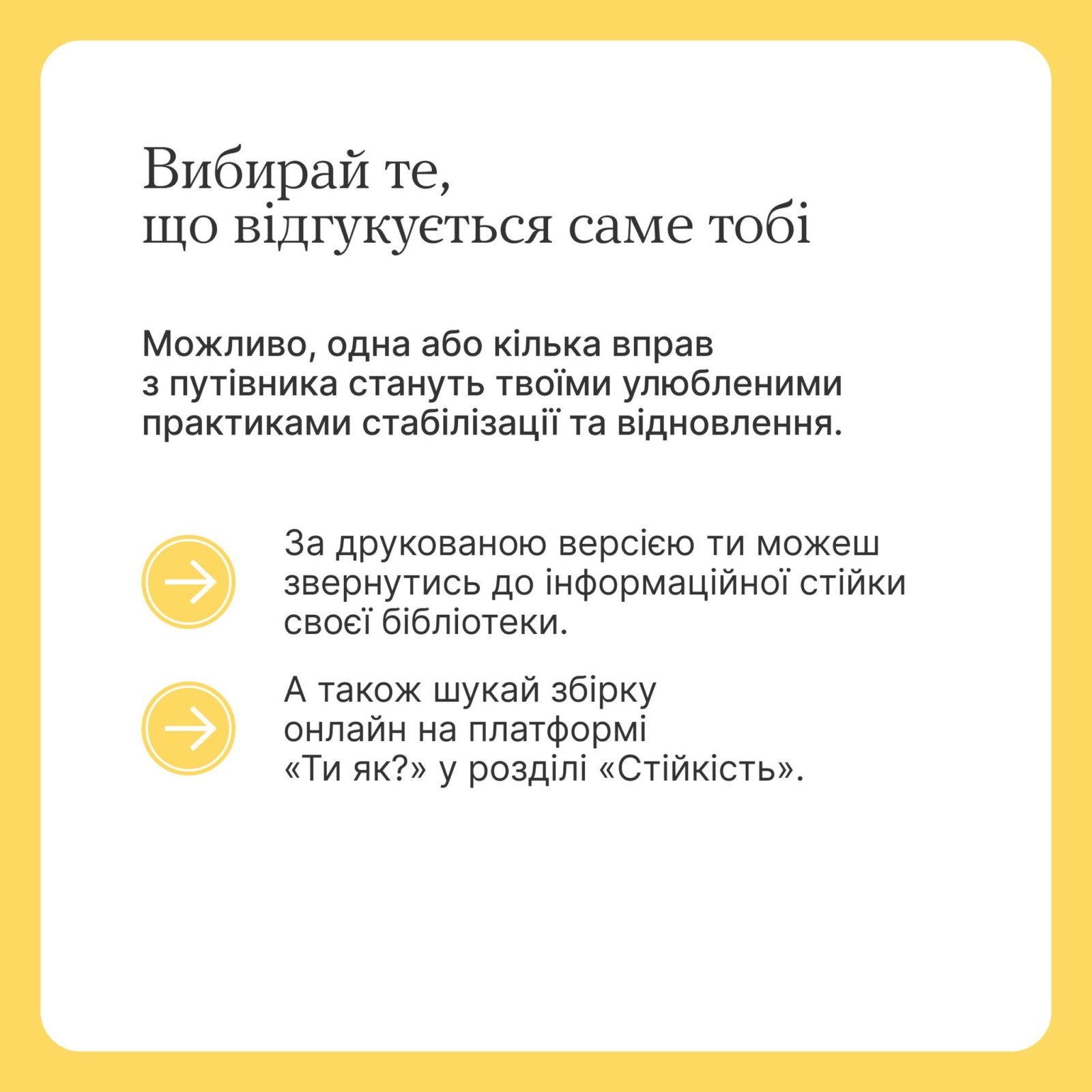 📲Досліджуйте путівник у зручному форматі: деталізований цифровий варіант уже доступний для перегляду та завантаження на платформі «Ти як?» у розділі «Стійкість» (https://howareu.com/stiikist).