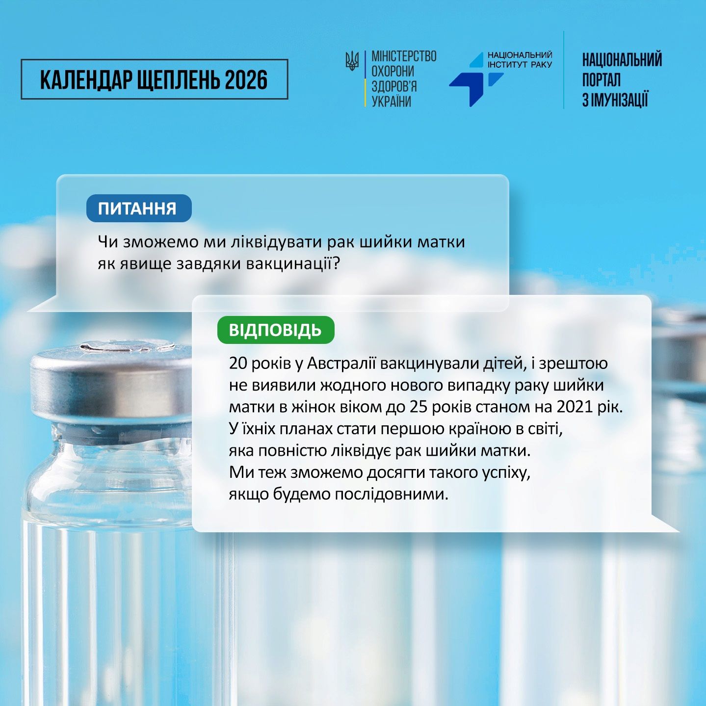 Австралії це вдалося: 20 років вони вакцинували дітей і зрештою не виявили жодного нового випадку раку шийки матки в жінок віком до 25 років станом на 2021 рік. У їхніх планах стати першою країною в світі, яка повністю ліквідує рак шийки матки. Ми теж зможемо досягти такого успіху, якщо будемо послідовними.