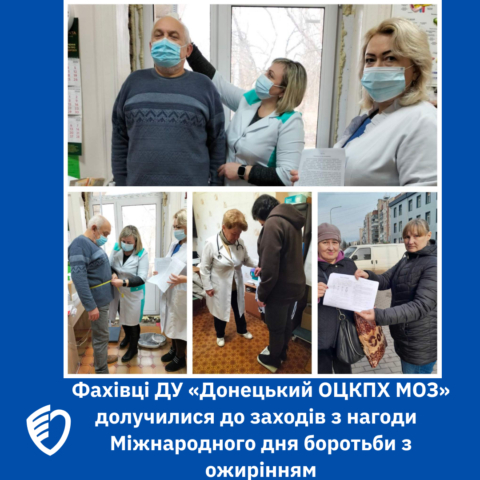 Фахівці ДУ «Донецький ОЦКПХ МОЗ» з нагоди Міжнародного дня боротьби з ожирінням організували та провели низку заходів, спрямованих на підвищення рівня обізнаності населення щодо ризиків надмірної ваги та ожиріння, а також на пропаганду принципів здорового харчування та фізичної активності як ключових чинників профілактики неінфекційних захворювань.