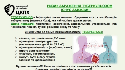 Туберкульоз – це інфекційне захворювання, спричинене мікобактерією, яка найчастіше вражає легені, але може вражати й інші органи. Основним шляхом передання туберкульозу є повітряний (аерогенний, аерозольний). Передання туберкульозу відбувається через інфекційний аерозоль, який утворюється під час кашлю, гучної розмови, сміху та плачу.