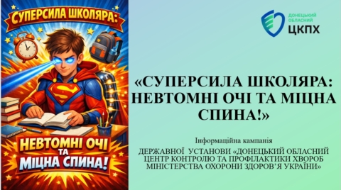 25 березня 2026 року за ініціативи ДУ «Донецький ОЦКПХ МОЗ» спільно з Департаментом освіти та науки Донецької обласної державної адміністрації відбувся організаційний онлайн-вебінар щодо проведення у квітні 2026 року інформаційної кампанії «Суперсила школяра: невтомні очі та міцна спина».