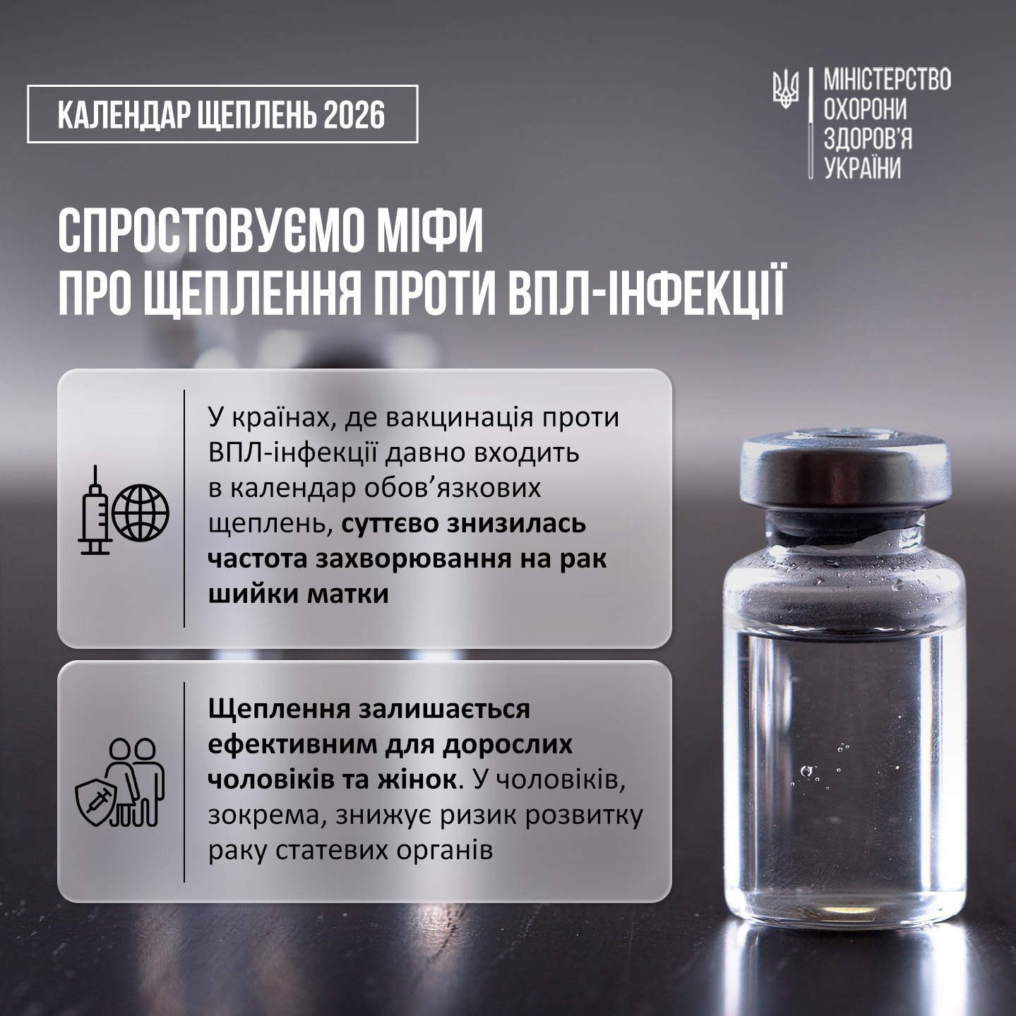 31 березня 2026Продовжуємо розповідати про щеплення проти ВПЛ-інфекції, яке з’явилося у новому Національному календарі профілактичних щеплень. Точніше, у цьому дописі розвінчуємо міфи разом з Веронікою ПАЦКО, лікаркою-онкологинею, завідувачкою відділення клінічної онкології Національного інституту раку.