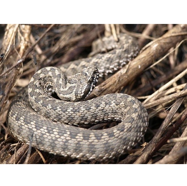 ГАДЮКА СТЕПОВА. Невелика змія (до 60 см) з товстим тілом і коротким хвостом. Має буро-сіре забарвлення, із чорною або темно-коричневою зигзагоподібною смугою вздовж хребта, яка є основною відмінністю цієї гадюки. Зустрічається у степовій та лісостеповій зонах. Полюбляє відкриту місцевість (кам’янисті схили, піщані місцини, чагарникову та степову рослинність).