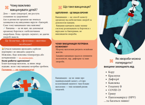 13 червня 2025Буклет містить інформацію для дорослих про необхідність та важливість вакцинації, для дітей – маленькі «цікавинки» (невеличка розмальовка).