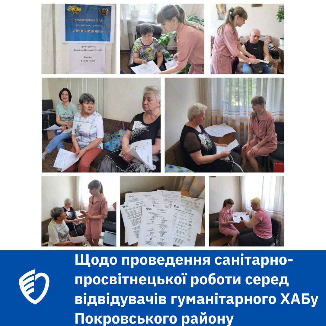 📅11.06.2025 року фахівцем відділу інфекційного контролю ДУ «ДОНЕЦЬКИЙ ОЦКПХ МОЗ» була проведена санітарно-просвітнецька робота серед відвідувачів гуманітарного ХАБу Покровського району «Простір добра», який знаходиться в м.Кам’янське Дніпропетровської області.