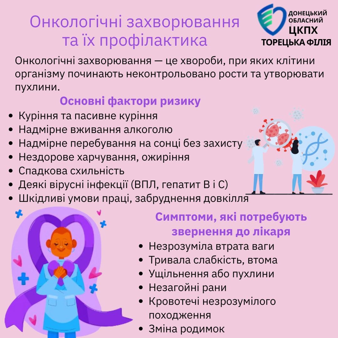 Фахівці Торецької, Костянтинівської та Краматорської філій спільно з медичними працівниками закладів охорони здоров’я провели комплекс інформаційно-просвітницьких і комунікаційних заходів, спрямованих на первинну та вторинну профілактику онкологічних захворювань.