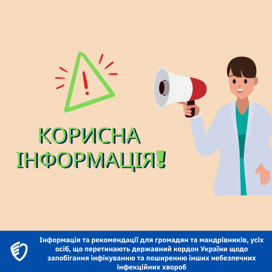 Інформація та рекомендації для громадян та мандрівників, усіх осіб, що перетинають державний кордон України щодо запобігання інфікуванню та поширенню інших небезпечних інфекційних хвороб