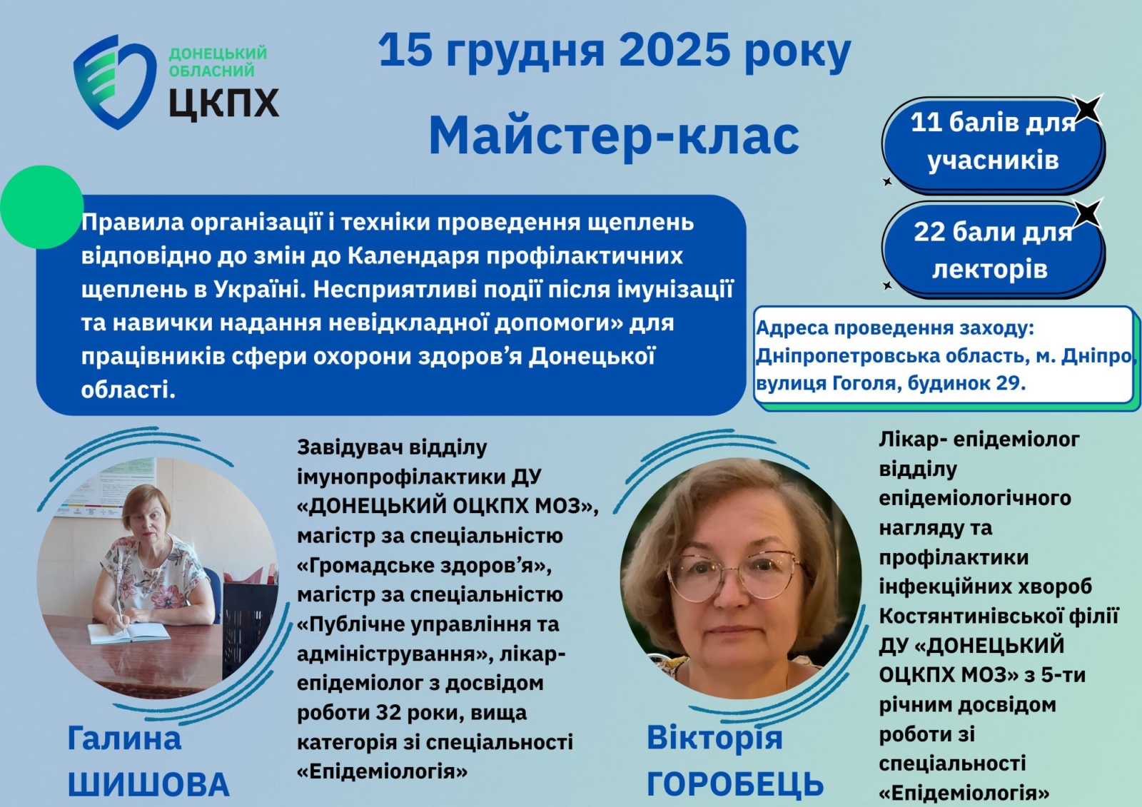 📅15 грудня 2025 року в місті Дніпро відбудеться майстер-клас для медичних працівників Донецької області на тему: