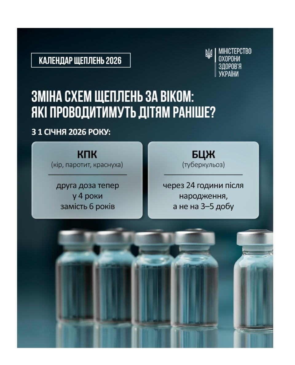 5 грудня 2025📌З нового року в Україні набуває чинності оновлений Національний календар профілактичних щеплень. Зміни відповідають сучасним світовим стандартам з імунізації та покликані забезпечити дітям кращий та більш ранній захист від небезпечних інфекцій.