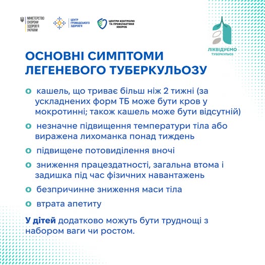 Основні симптоми легеневого туберкульозу