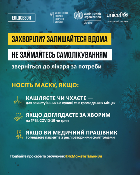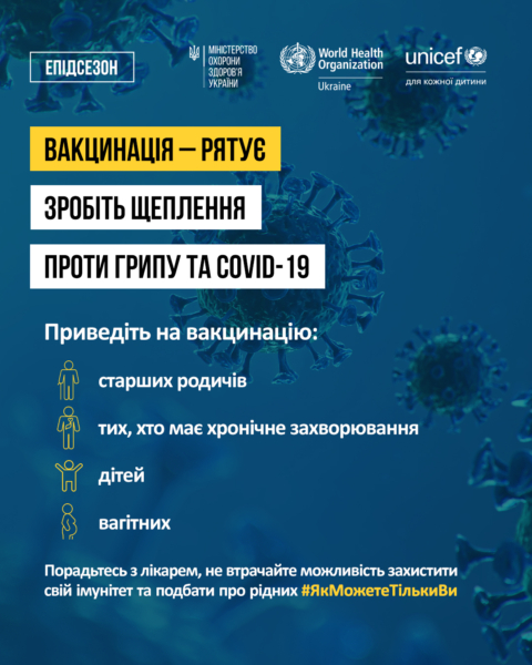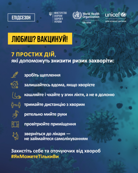 ☝️Важливо памʼятати про правила профілактики ГРВІ та грипу, розуміти, що вакцинація проти грипу, COVID-19 знижує ризик важкого перебігу хвороби, госпіталізації та смерті від цих інфекційних хвороб. У разі захворювання не зволікайте зі зверненням до лікаря, не займайтеся самолікуванням.