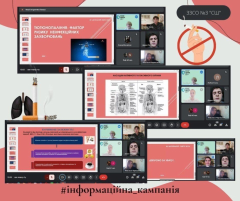 📣Всі заходи, які були передбачені планом – графіком проведення інформаційної кампанії, виконані, а саме: у перший декаді листопада в онлайн-режимі проведено вебінар «Профілактика тютюнопаління, як фактор ризику неінфекційних захворювань», до якого долучилися 939 учнів, 72 вчителі та 11 батьків.