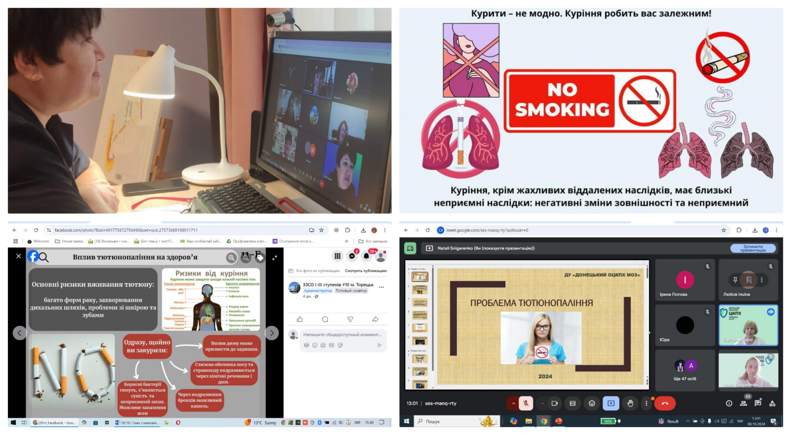 У закладі загальної середньої освіти № 10 Торецької МВА Бахмутського району Донецької області було проведено виховну годину: «Молоде покоління проти паління», «Куріння вбиває. Твоє життя-твій вибір!»; учнями розроблено 7 плакатів «Електронні сигарети – серйозна загроза здоров`ю», «Вплив тютюнопаління на здоров`я», «Обирай здоров’я, а не паління!», «Скажи палінню Ні!!!», «Куріння вбиває!», «Вплив тютюнопаління на здоров`я людини», «Куріння – смерть у розстрочку»🚬⚰️; а також на інформаційних ресурсах закладу освіти висвітлено інформаційний лист «Вейпінг серед підлітків».