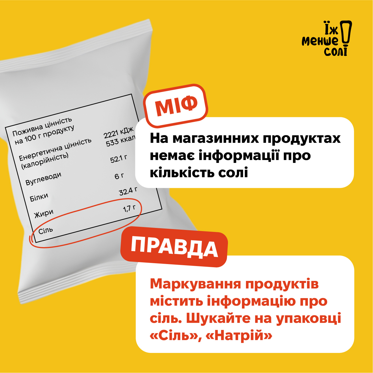 🟠Міф: На магазинних продуктах немає інформації про кількість солі