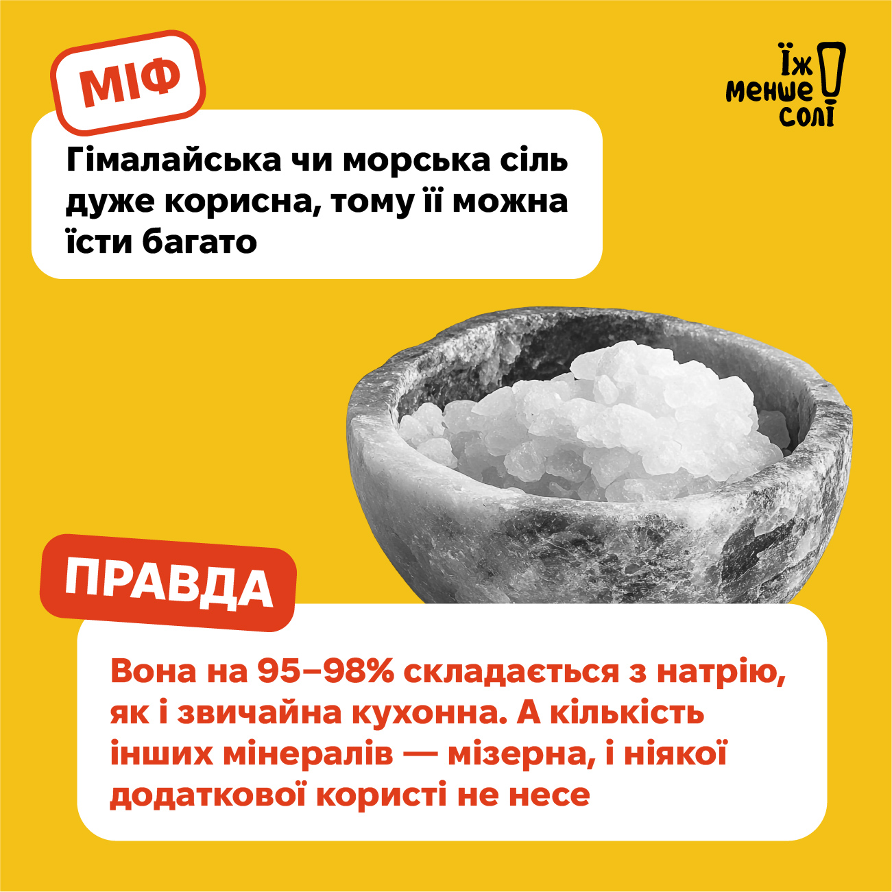 🟠Міф: Гімалайська чи морська сіль дуже корисна, тому можна їсти багато