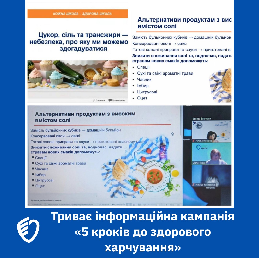 🔔Фахівці ДУ «Донецький ОЦКПХ МОЗ» у межах інформаційної кампанії «5 кроків до здорового харчування», ініційованої установою спільно з Департаментом освіти і науки Донецької ОДА, провели другий тематичний вебінар на тему: