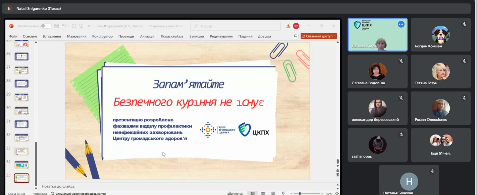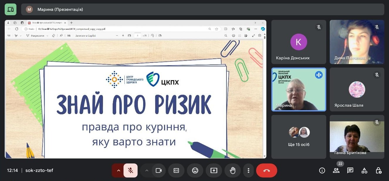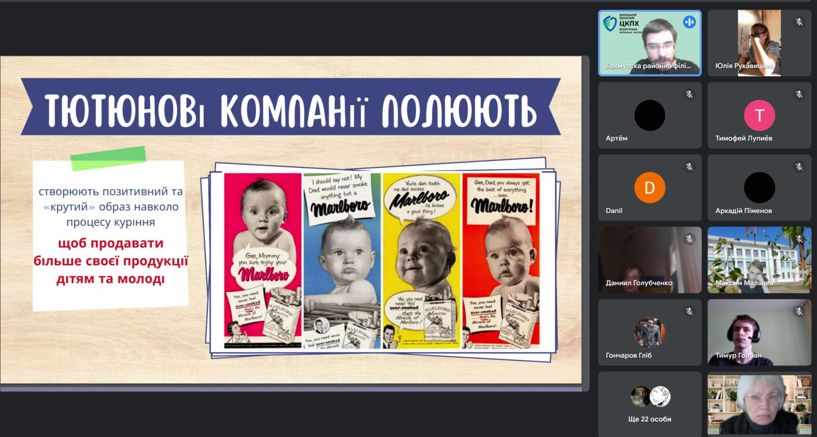 Вебінар-презентація: «Знай про ризик – правда про куріння, яку варто знати» серед учнів 8-11 класів закладів освіти Донецької області